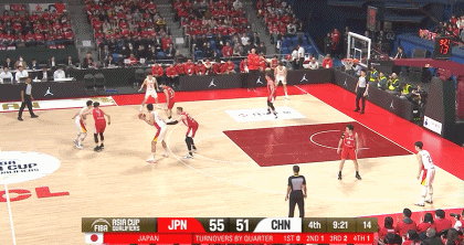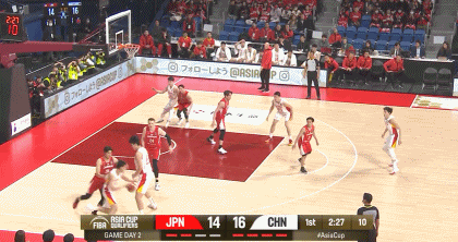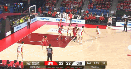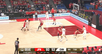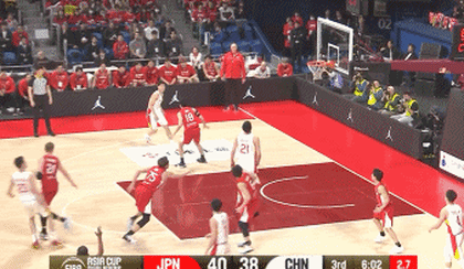 第二节,胡明轩里突外投连续得分!中国男篮25-22日本