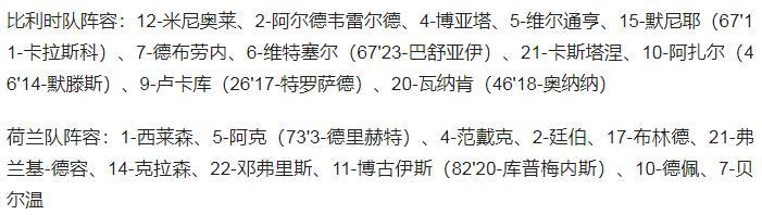 下半场易边再战,第50分钟,荷兰队扩大比分,博古伊斯中场送出直传,德佩接球突入禁区,在三名后卫的包夹下右脚推射破门,荷兰队2-0领先比利时队。
