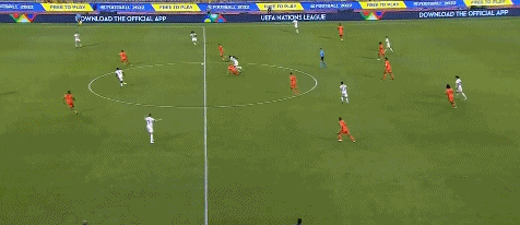 第14分钟,德布劳内拿球突入禁区右侧右脚吊射,皮球稍稍打偏。第16分钟,荷兰队前场抢断,博古伊斯获得单刀球机会,他的射门被米尼奥莱封出底线。