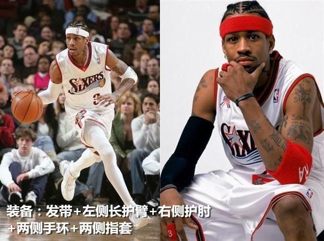 说到阿伦-艾弗森,大家脑海里的第一印象无疑是那个梳着地垄沟、脖子上纹着“忠”字的不羁小伙。而除了上述这两个标志性特征外,艾弗森另一个标志便是他经常佩戴的发带了。我们很难想象在场上没有发带和护臂的艾弗森打球是什么样子的,在那个穿运动紧身衣都显得非常奇怪的联盟,带着发带和护臂的艾弗森无疑是一个另类。