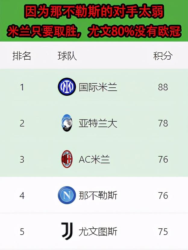 那不勒斯今晚的3分是很稳的,如果亚特兰大输给米兰,那就只有第四名了。