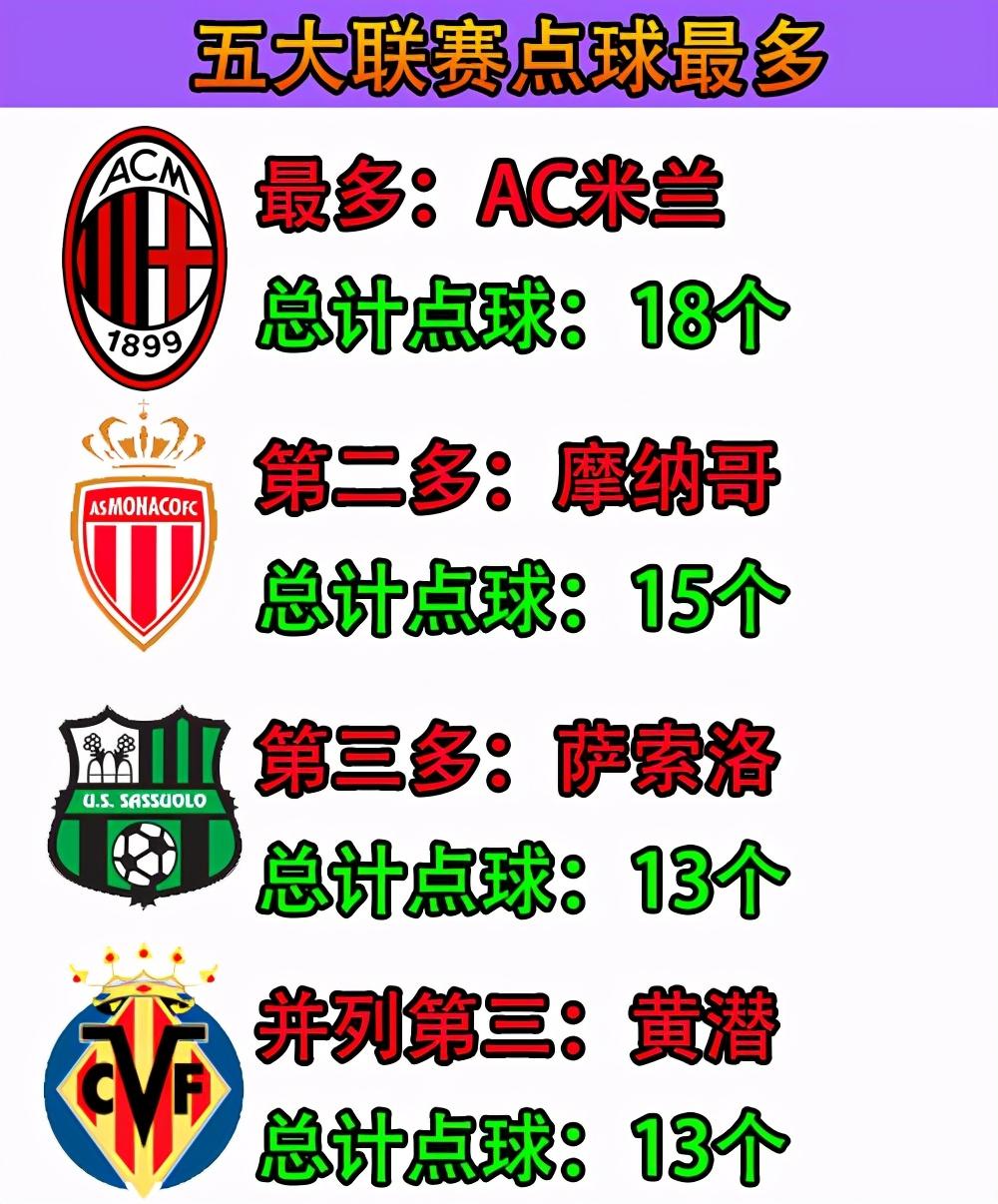 比如点球,米兰总共拿到了18个点球,全五大联赛最多。