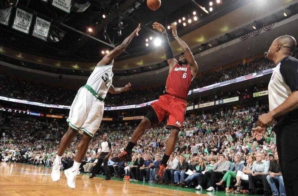 比赛开始之后,上一轮系列赛腹股沟拉伤的波什并没有首发出战,这让本就孱弱的热火内线雪上加霜。热火如果想赢下这场比赛,2米06的詹姆斯作为热火场上最高的球员,不光需要在进攻端提供稳定的火力,在防守端还要再对位皮尔斯的同时,帮助队友限制住凯文.加内特。开局詹姆斯的第一次出手是一次空位的中投,可惜詹姆斯并没有投中。这是一次在普通不过的出手打铁,然而了解詹姆斯打法的都知道,如果詹姆斯在比赛中没有找到投篮的手感,那他就只能依靠强壮的身体去冲击对手的禁区。但面对那年绿衫军的禁区防线,仅仅是冲击篮下得分,是不太可能赢球的。詹姆斯的这次投篮打铁无疑让热火球迷的心都提到了嗓子眼。好在在这之后詹姆斯的表现没有让球迷失望,接下来的6次出手全部命中,第一节就砍下了14分。热火领先十分结束了首节比赛。