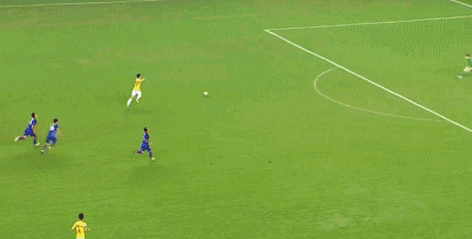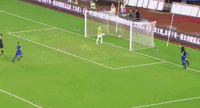 推射不行,瓜林用爆射!准确击中门梁!仔细看这球,大家会发现,这球像乒乓球一样,带旋转的~真心佩服瓜三分。