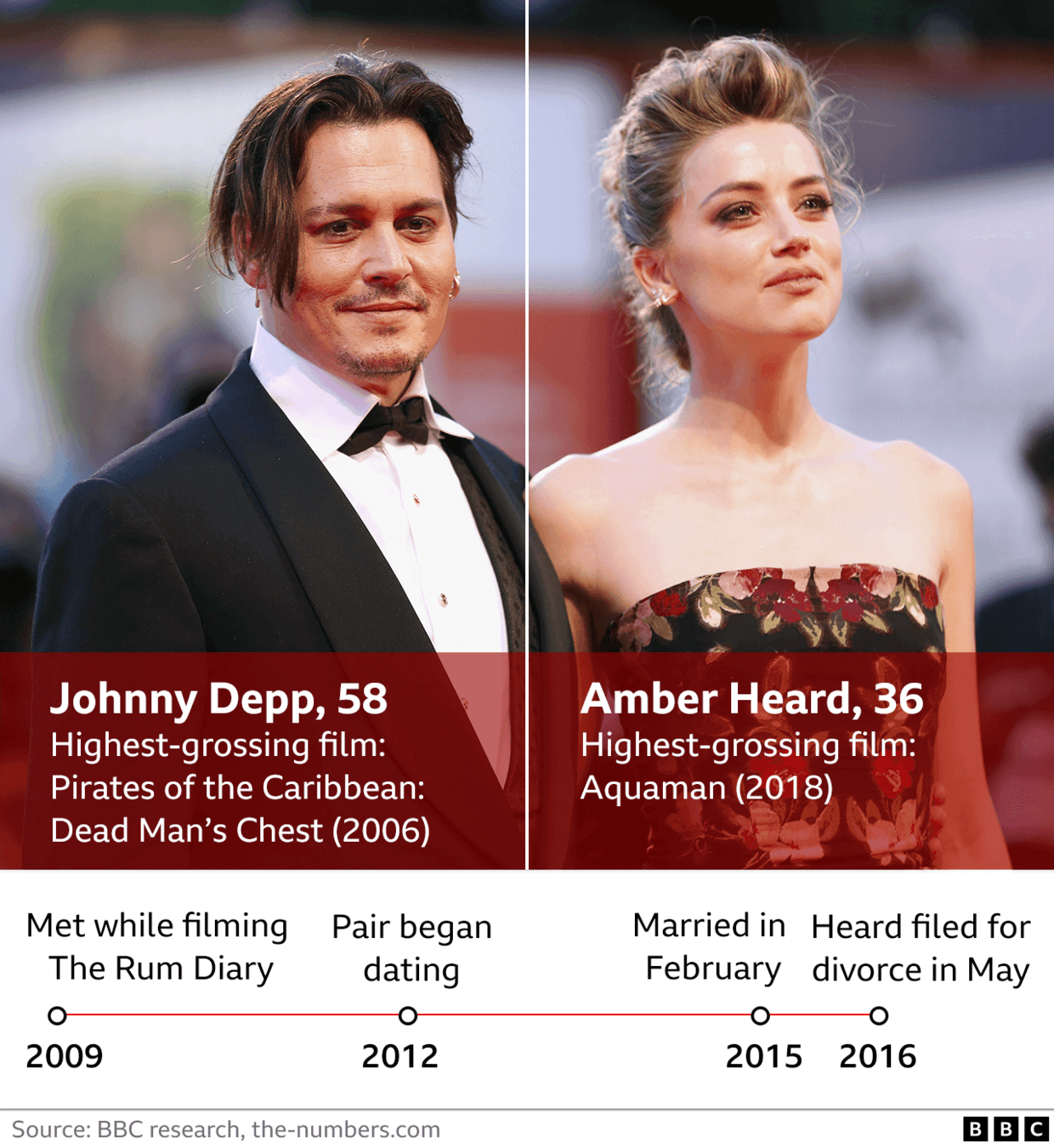 德普比安珀大22岁,安珀表示德普经常管教她,禁止她穿暴露的衣服,禁止她演性感的角色。安珀认为德普不希望她继续演戏,并对她说:“你不需要工作,我会养你的,孩子”,但安珀并不想放弃演艺事业。