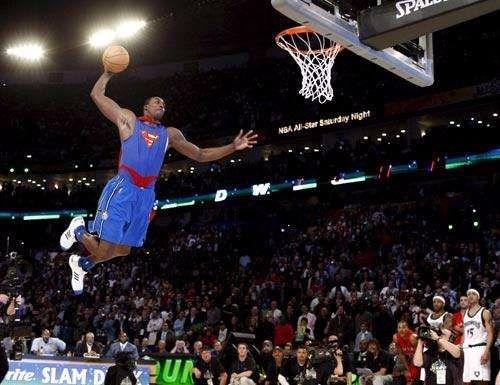 霍华德的罚球线扣篮可能是视觉效果最酷炫的一次了!看着那红色的披风,那在空中舒展的身体,真的就好像真人版超人,整个人都飞了起来。