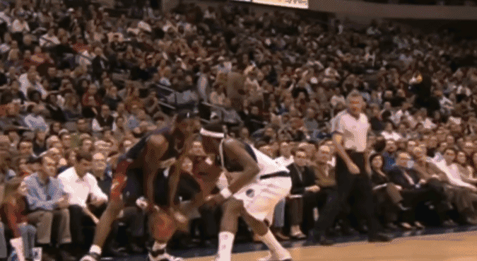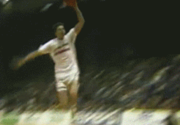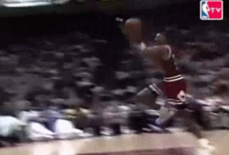乔丹的罚球线扣篮无疑是经典中的经典。尤其是在空中的那一下鲤鱼摆尾,让乔丹这个动作显得如此游刃有余。相信一说起扣篮,很多人脑海里都会浮现出Air Jordan的剪影LOGO,可见乔丹的罚球线扣篮,在人们心中的地位,有多么与众不同。