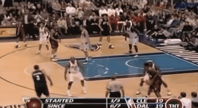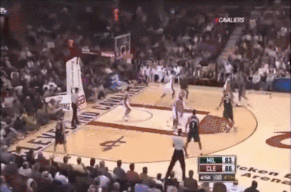 能在实战中秀出罚球线扣篮的球员寥寥无几,而詹姆斯就是其中之一。在两人的围追堵截之下,艺高人胆大的詹姆斯高高跃起,扬起自己的手臂,完成了一个标志性的战斧暴扣。如果詹姆斯现在还能完成这种动作,估计那个镜头会在街头巷尾播放整整一年。