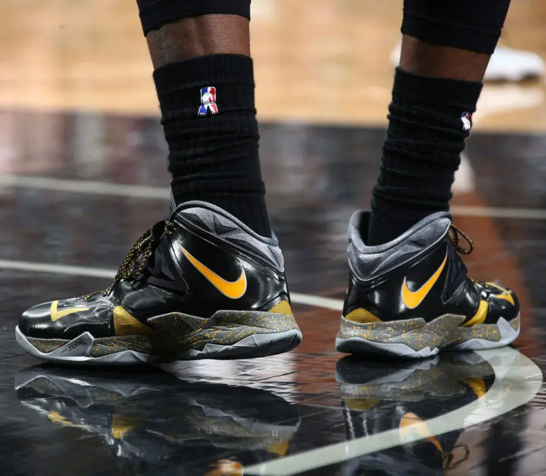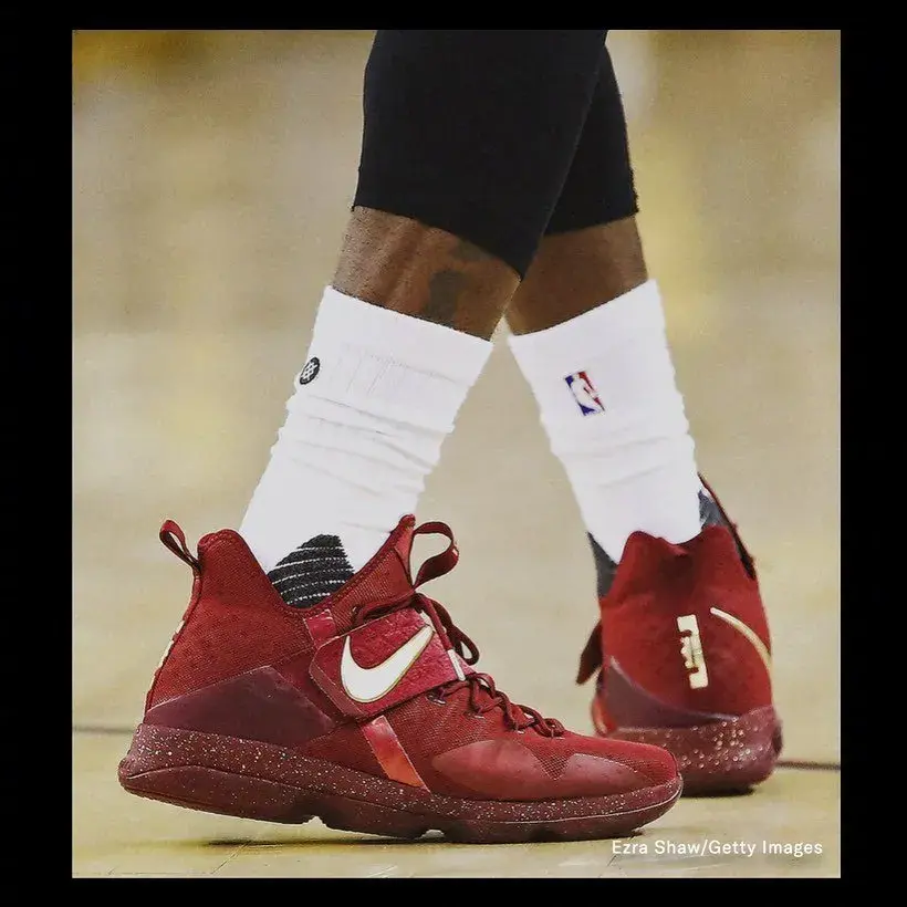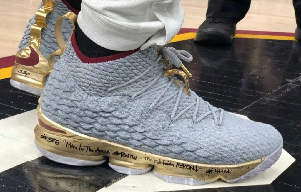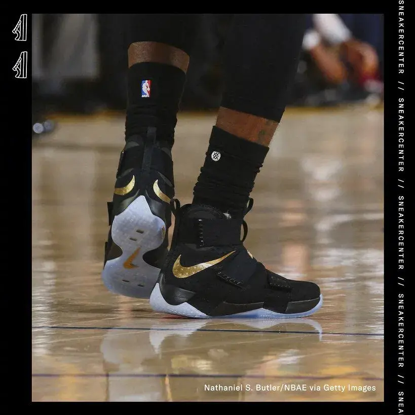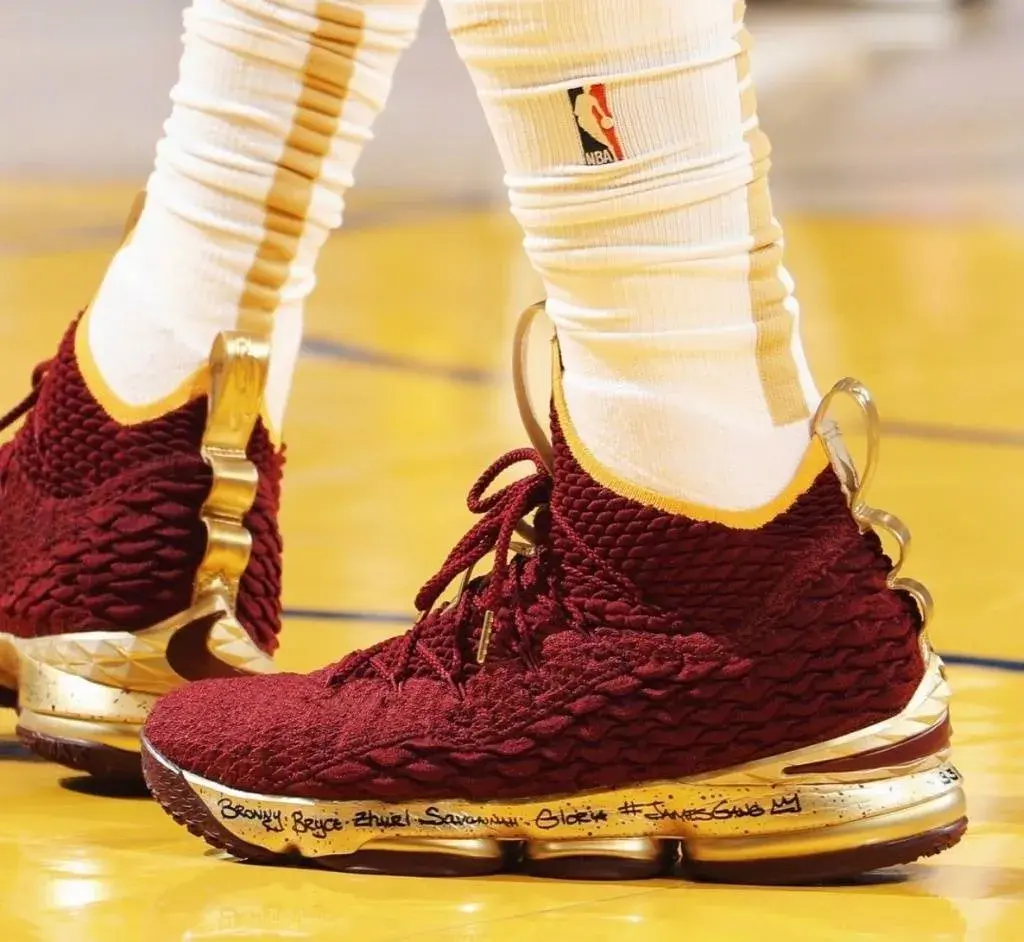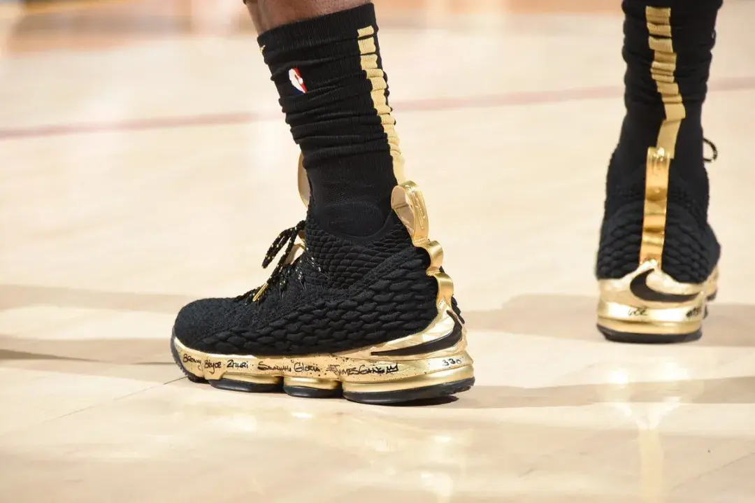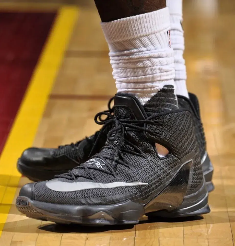 今年总决赛第五场,詹姆斯穿了黑色球鞋,结果惜败。