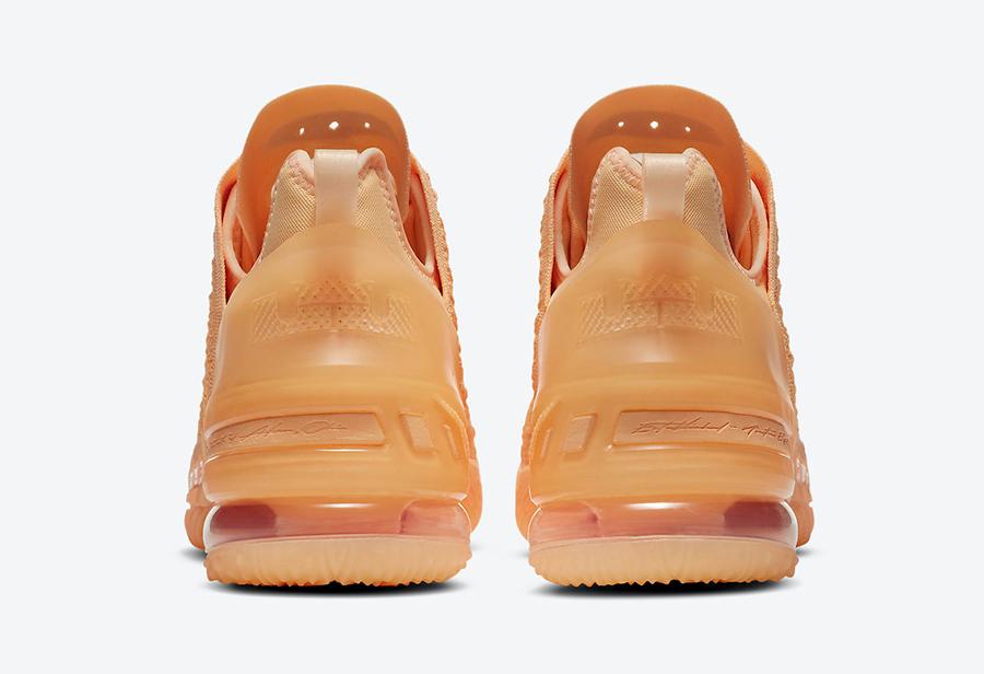 这双 LeBron 18 应该是全新 “Sisterhood” 系列中的一员,整双鞋全部采用亮橙色覆盖鞋面与中底,后跟的半透明 TPU 支撑和水晶外底在