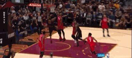 在和猛龙的第三场中,比赛刚进行到第二节一分多钟,詹姆斯三分线上一个加速过掉防守队员,面对伊巴卡的协防,詹姆斯不慌不忙,使出了哈登的招牌动作欧洲步,漂亮的将球打进!虽然詹皇的欧洲步没有哈登的快和迷惑性,但在这样的年纪还能再次补充新武器,并且耍得这么漂亮,只能说詹姆斯牛逼!