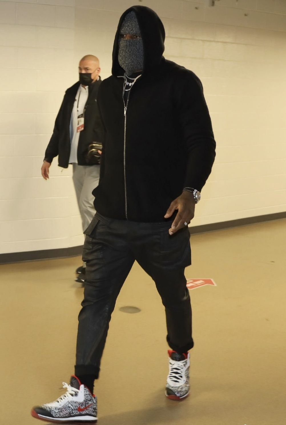 今日,湖人进行恐怖七连客的第二个客场,他们来到了寒冷的芝加哥。詹姆斯全副武装,抵御寒冷,只露出双眼。这赛前的入场造型,给人的感觉不像是来打球的,像是来打劫的。