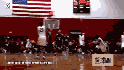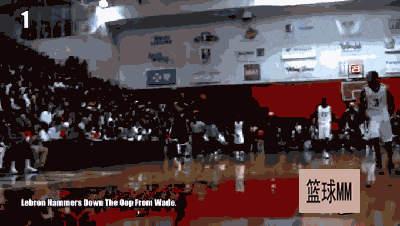 看下第一球,韦德直接空中抛球给詹姆斯,直接头超过篮筐暴扣!
