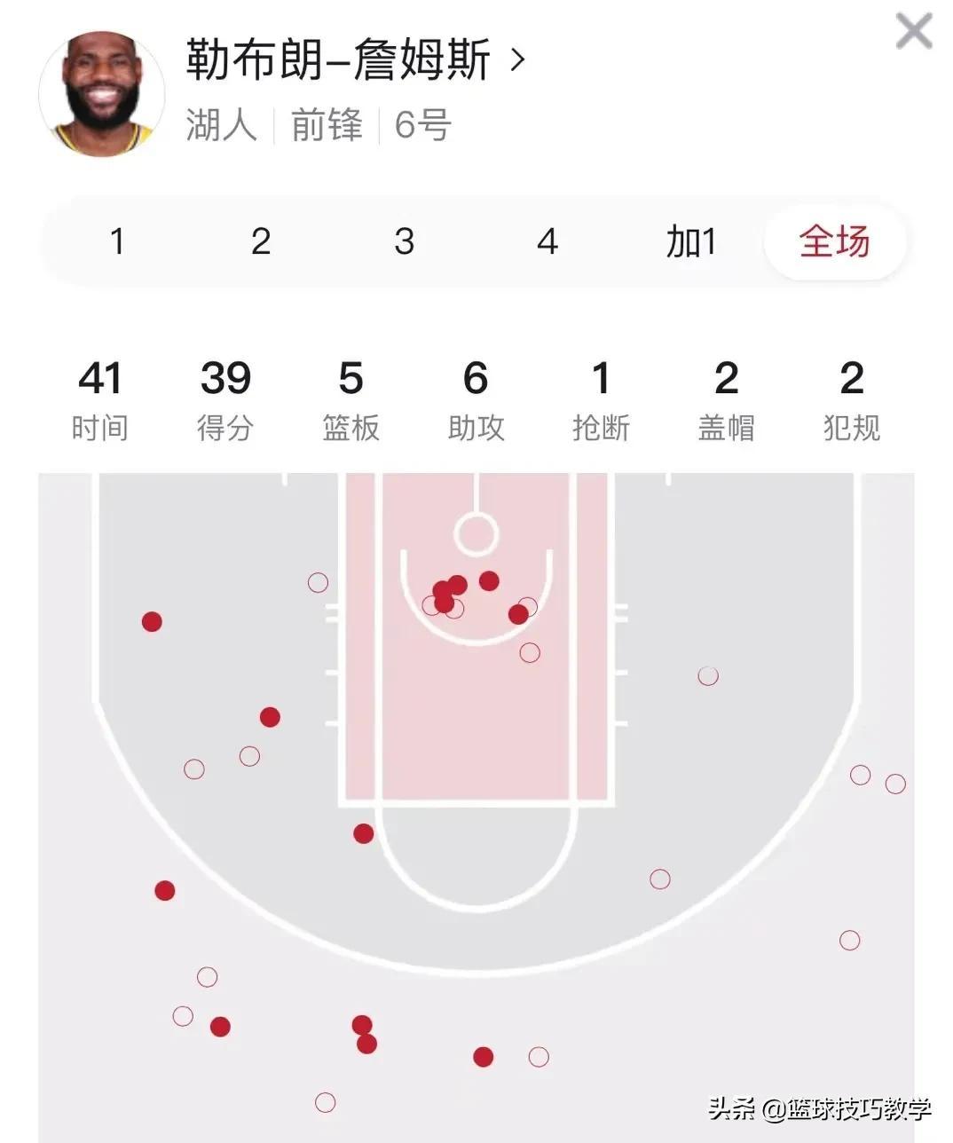 全场29投13中拿下39分5篮板6助攻
