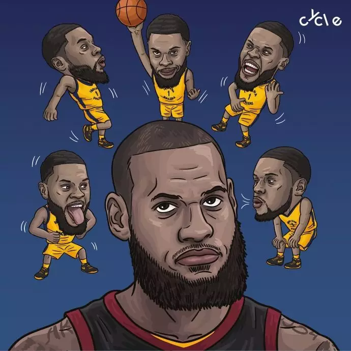 再看新的庆祝动作以及时隔7年再现的霸王步,我合理怀疑被禁赛的时间里,詹姆斯在家中没少练习;
