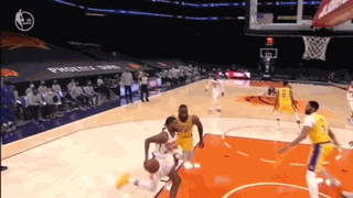 勒布朗詹姆斯带领洛杉矶湖人客场对阵纽约尼克斯队,最后洛杉矶湖人在麦迪逊广场花园以113-105的比分,击败对手。