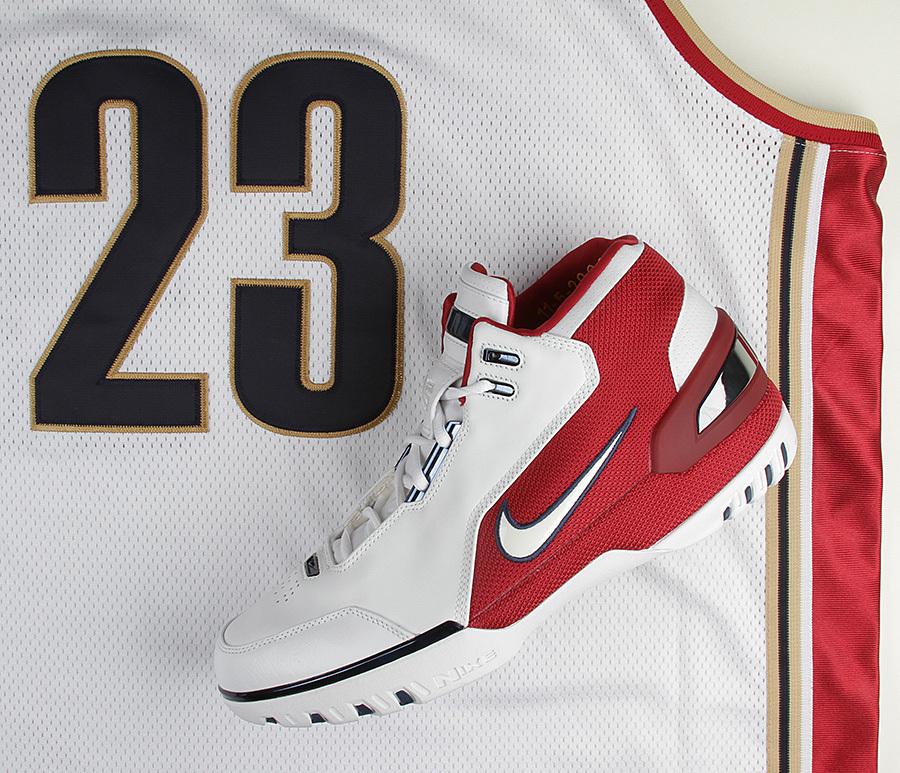 当年还未进入NBA的詹姆斯,已经和耐克签下了7年9000万美元的天价合同。耐克方面是诚意满满,在詹姆斯的新秀年就给他量身打造了这双AZG。作为詹姆斯元年战靴,AZG搭载前Zoom后Sole气垫,中底还有碳板加持,放到今天也是妥妥的高配战靴。