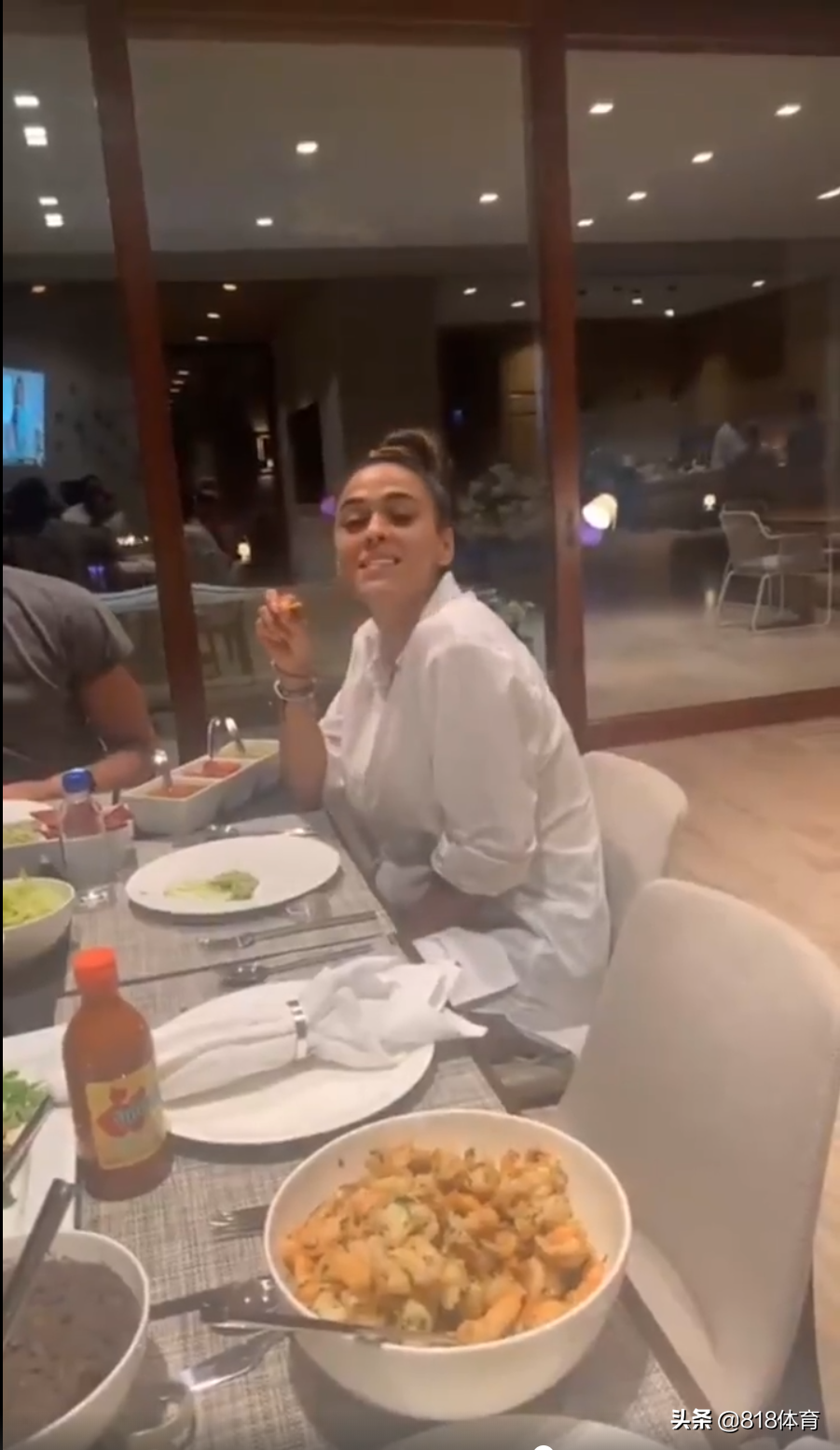 随后詹皇又将镜头对准妻子萨瓦娜,詹嫂依然是做了个手势表示拒绝。