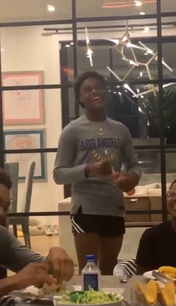 随后是坐在老詹正对面的二儿子布莱斯,他笑嘻嘻地喊了一句“Taco Tuesday”。