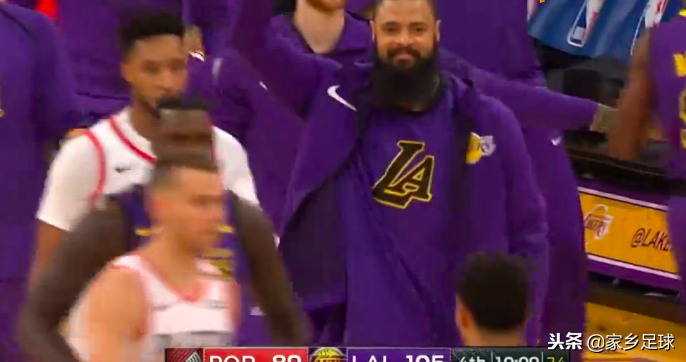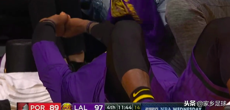 湖人队97比89领先8分进入第四节,已经打了29分钟的詹姆斯有些疲惫了,直接躺在了地上放松休息,结果就在詹皇放松的这段时间里,湖人队第四节开局连得8分,让对手一分没得直接105比89把对手给打停了,波普和哈特各自命中一个3分球,波普拿下了5分,湖人队直接领先16分把西部第二给打爆了。