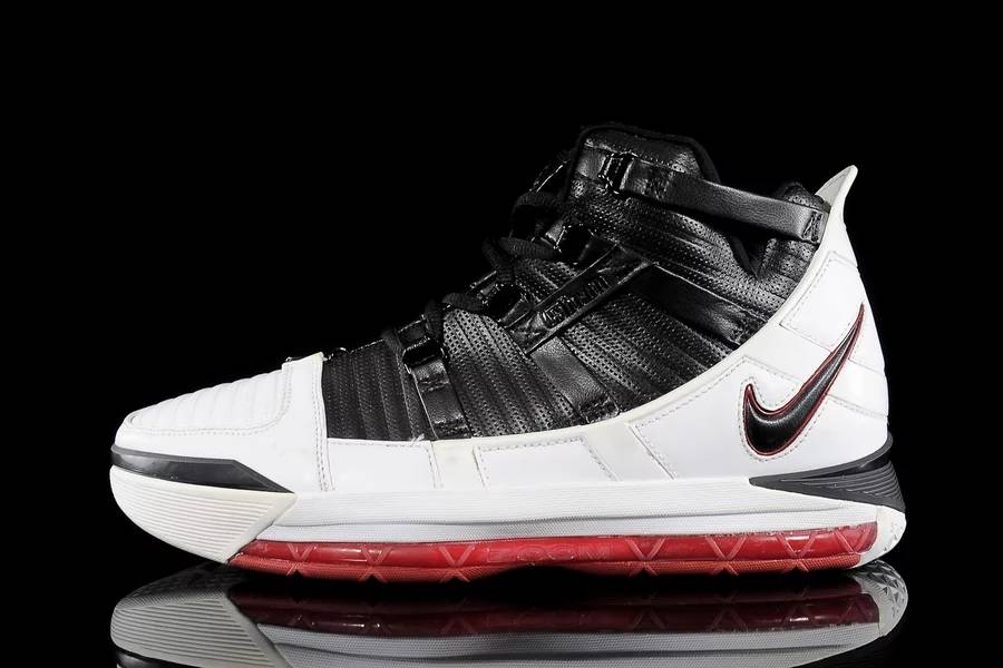 在耐克推出詹姆斯第三代签名运动鞋的时候,勒布朗-詹姆斯已经成为当时NBA最好的球员之一。勒布朗三代基本上是在二代的基础上外加几条窄的皮带装饰,这让它整体看起来更加简约,另外三代仍然装备了Zoom气垫系统。