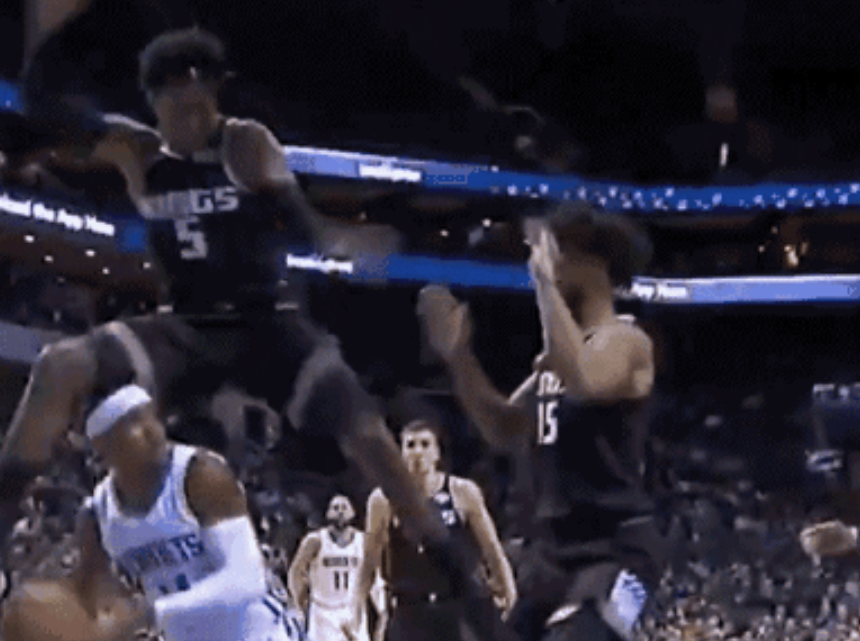 在前不久一场国王与黄蜂的比赛福克斯在追防格雷厄姆时,被后者假动作点飞,福克斯直接从他头顶飞了过去。然而,好的“防守者”即使失去防守位置,也会努力弥补过错。