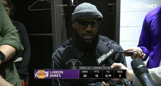 直播吧10月15日讯 NBA季前赛收官战,湖人86-133不敌国王。赛后,詹姆斯在更衣室接受了记者的采访。