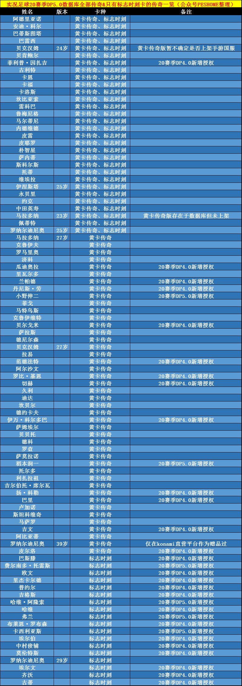 1.所有4.2.0的34215名球员(含截止至当前的精选)并不包含在DP5.0新增的黄卡传奇——小野伸二和稻本润一,但凡本赛季没有20C,同时网易不会给国服再次进行数据库更新的话,这两位日本传奇将注定不会在20赛季与手游国服玩家见面 ;