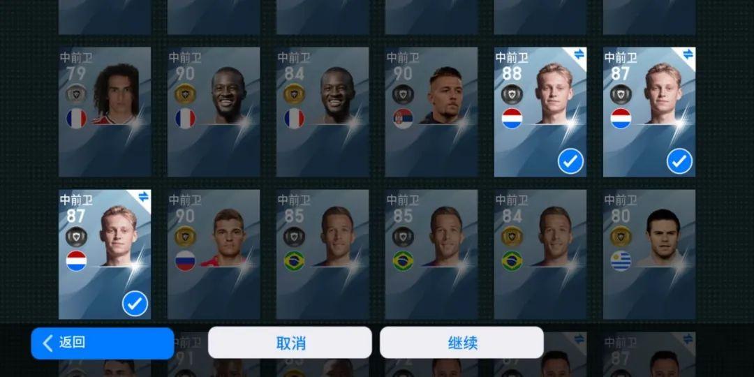 2.20A和20B的同名球员不同总评,取高值,例如1个20A的底黑弗兰基·德容,2个20B的87黑弗兰基德容,可以兑换1个90黑;