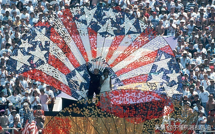 1994年美国世界杯开幕式,当年这场世界杯,我同样是一点印象也没有, 当年正在上初中,当年没有网络,电视机家里记得当年也没有安装有线,只能看本地频道,现在从视频回放上看整场开幕式像个狂欢巡游,舞台上的人自得其乐,可是没有整齐划一的节奏。就是在这届世界杯上,意大利队罗伯特.巴乔踢飞了点球后忧郁的身影,让无数女球迷泪流满面。