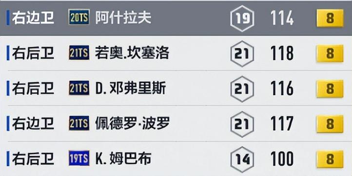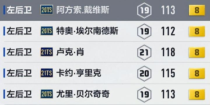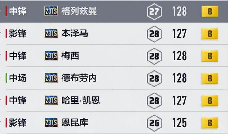 高配置的TS套,由于工资限制,边后卫用不了23TS赛季球员,只能从以往的TS里选,也能触发TS套加成。由于绝版太久,这些卡价格比较贵,而且难买到,需要有些耐心。省工资的主要位置还是门将,可以用10工资以下的球员,基本扑救效果也可以。