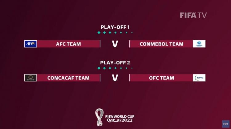 根据规则,2022卡塔尔世界杯32强中,亚洲区有4.5个名额,两个小组的前两名直接晋级,两个第三名先进行两回合的亚洲区附加赛,胜者再和其他大洲参加的附加赛球队争夺一个晋级名额。今天抽签结果出炉,亚洲区第五名将对阵南美洲世预赛的第五名。