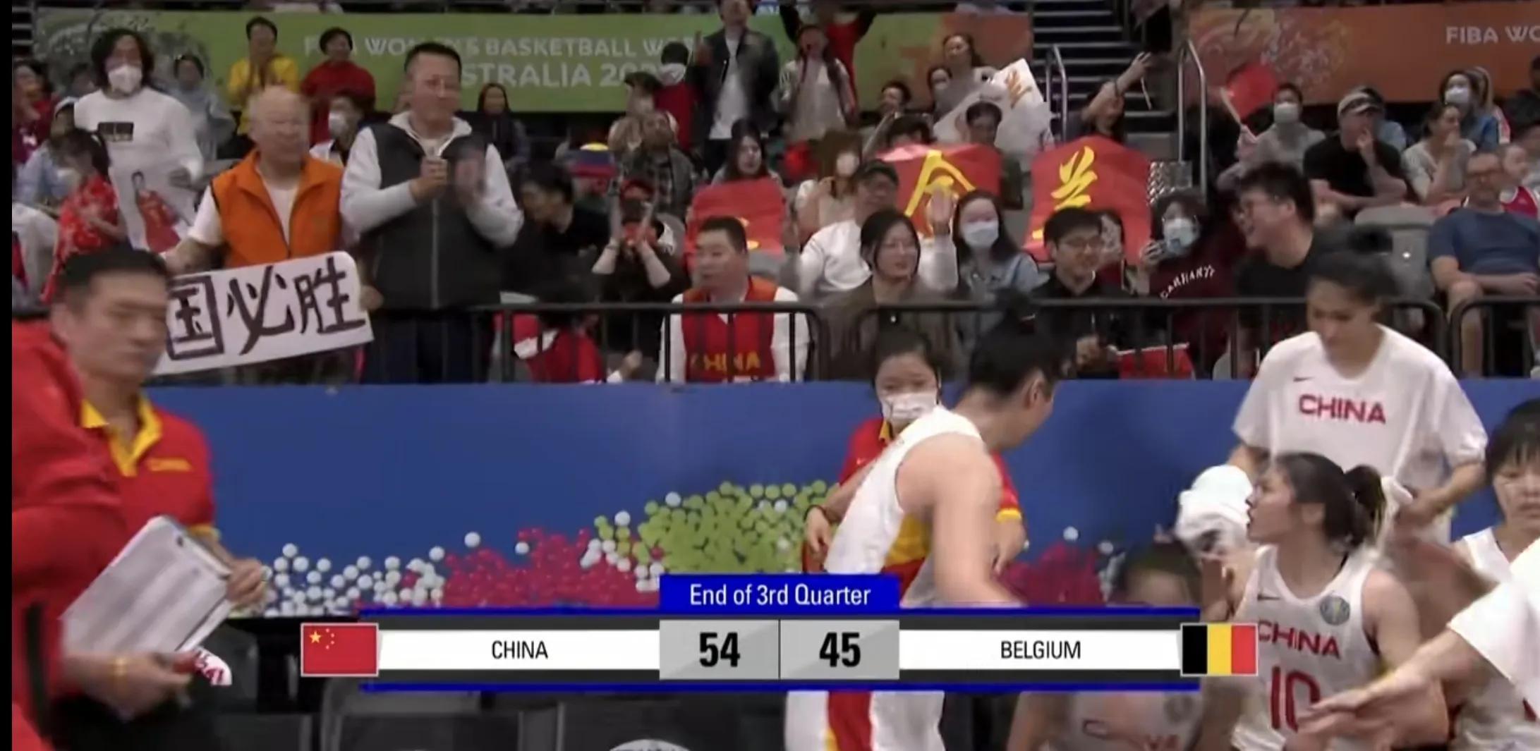 第三节比赛结束,中国女篮54-45,暂时领先9分。