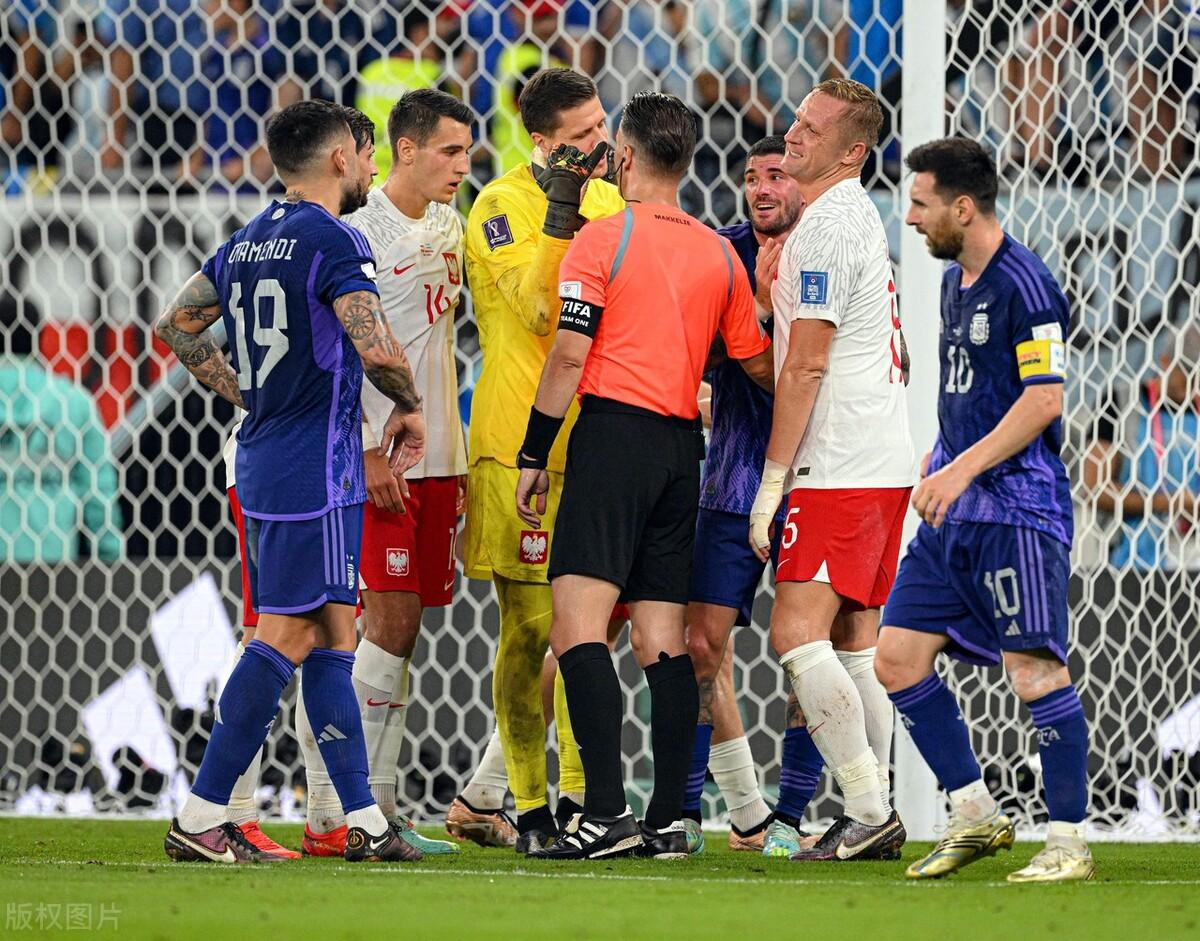 比赛第36分钟,梅西在禁区内与波兰队门将什琴斯尼碰撞后倒地,VAR介入后主裁判判罚点球。不过梅西主罚的点球没有打出太高的质量,被什琴斯尼扑出。