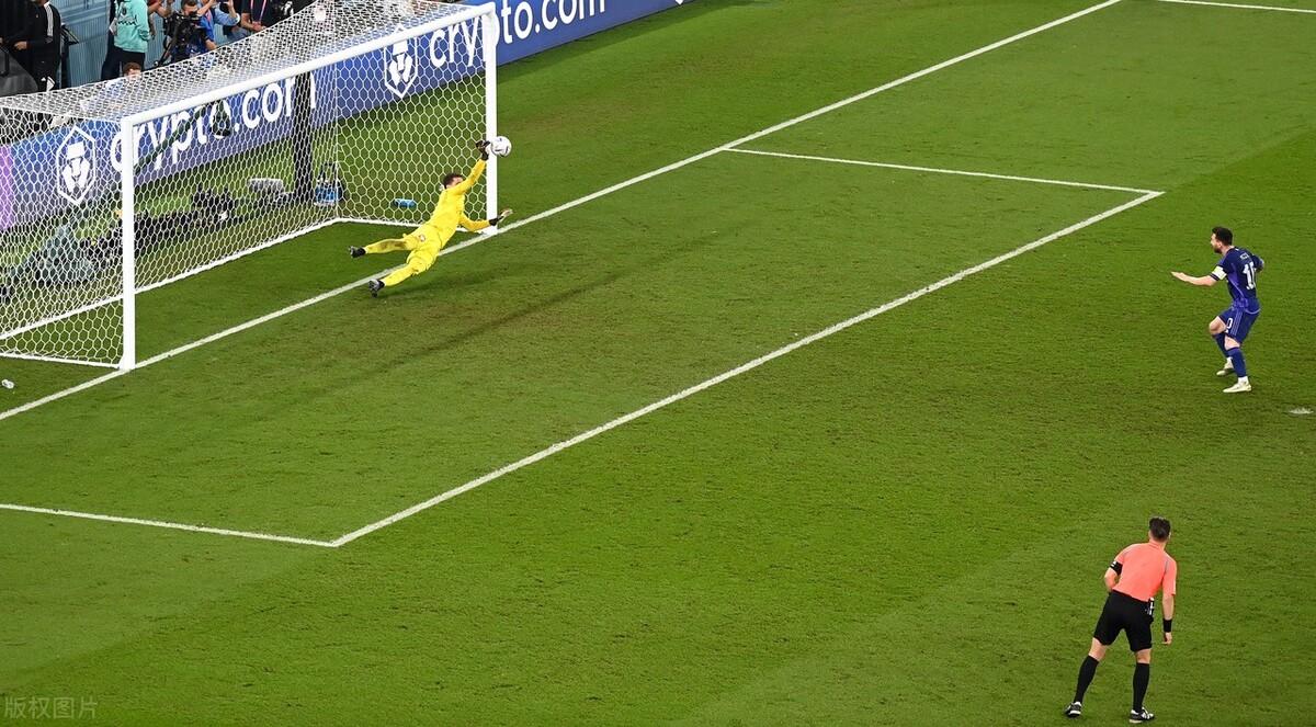 在上半场第38分钟,梅西在禁区内争顶时被什琴斯尼打到面部,裁判回看VAR后判罚点球,梅西亲自主罚打向右路的半高球被什琴斯尼扑出,什琴斯尼连续两场在世界杯上扑出点球。