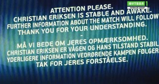 球场屏幕公告:埃里克森已经醒来情况稳定,更多的比赛的相关信息稍后带来。↓