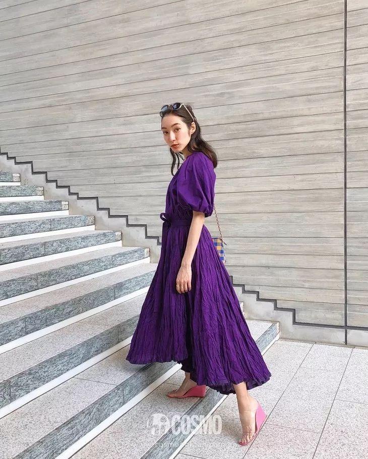 不过能ho住超难驾驭的紫色真的是她自己肤白貌美的优势……