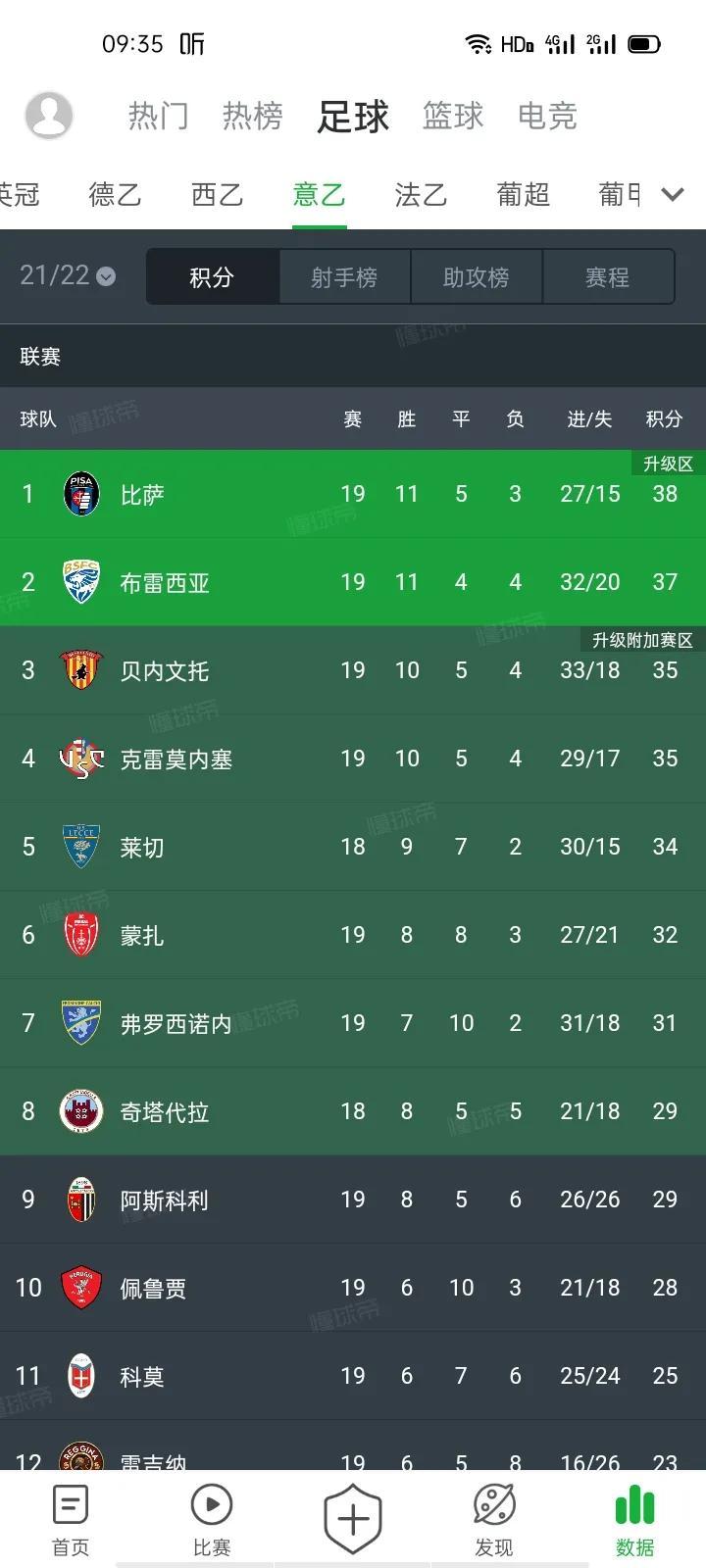 本赛季意乙科莫排在11位
