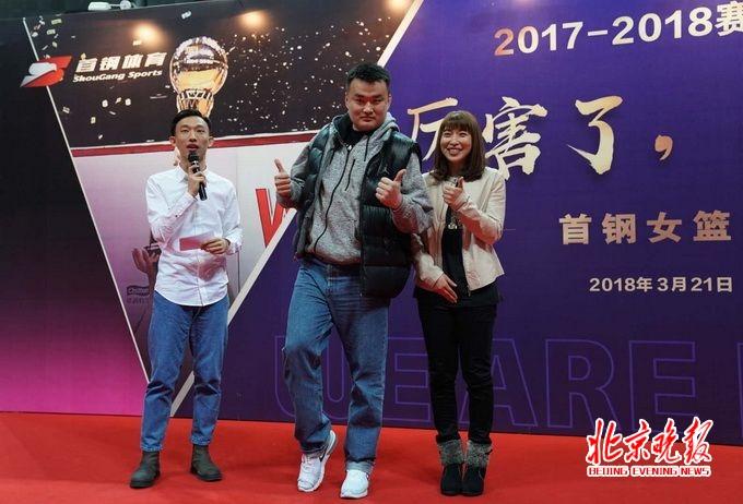 在随后开始的互动环节中,首钢女将后卫杨半伴的老公被邀请上场。赛季之前,杨半伴刚刚完婚,赛季中,她的铁杆球迷就不止父母两人了。“现在我老公也加入进来了。”她笑着说,“还有一位是我公公。我现在感觉,我老公的爸爸是我的一号球迷,‘脑残粉儿’。”