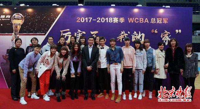 首钢女篮的姑娘们今晚首先拍摄了时装照。这虽然是首钢女篮的第四个冠军赛季,但却是第一次有这种待遇。“我们老是说云指导是我们队的'颜值担当',他也非常希望我们都美美的。”首钢女篮老将周宏华笑着说。虽然准备的时间很有限,每个姑娘都精心挑选了自己的衣服。她们高挑的身材加上俱乐部专门聘请的造型师设计,女篮姑娘们秒变“女子天团”。她们像参加电影节的影视明星一样,在球迷的注视和掌声中,依次走过红毯,在总冠军奖杯金色光芒的照耀下,于一块印着“厉害了,我的'家'”的背板上签上自己的名字。