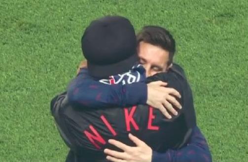 就在赛前热身阶段,一身休闲装的小罗特意走入场内,“大巴黎”现役头号球星梅西见状,立即一路小跑上前,与小罗紧紧拥抱。