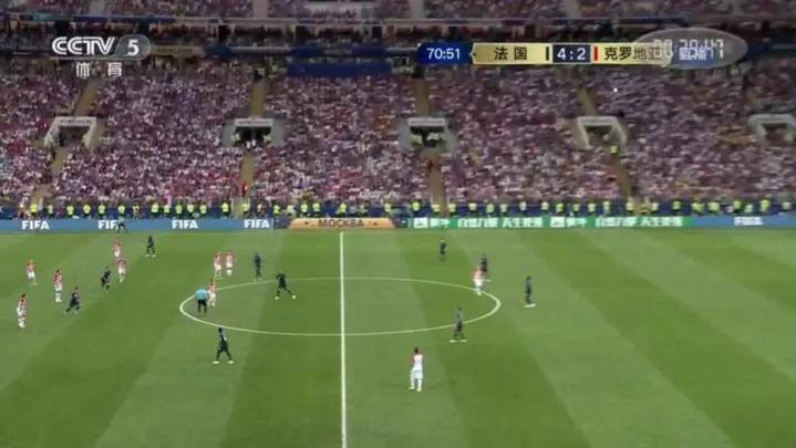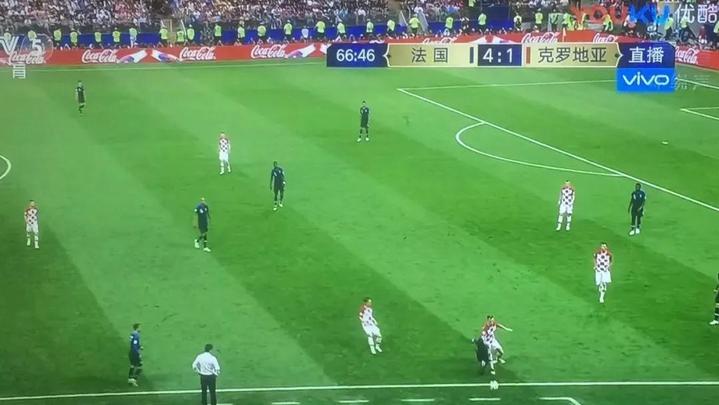 第65分钟,姆巴佩禁区外无人防守,一脚低射打进死角!法国4-1领先!冠军近在咫尺!