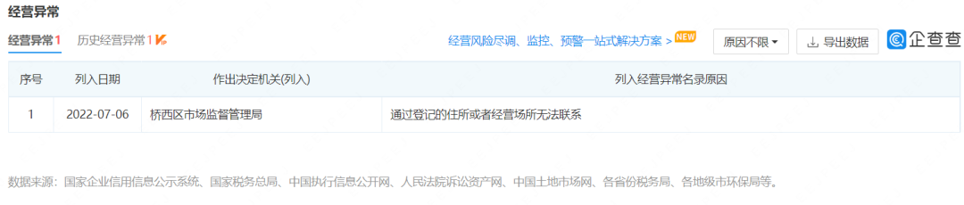 此外,今年7月,河北重阳曾因通过登记的住所或者经营场所无法联系,被列入经营异常名单。