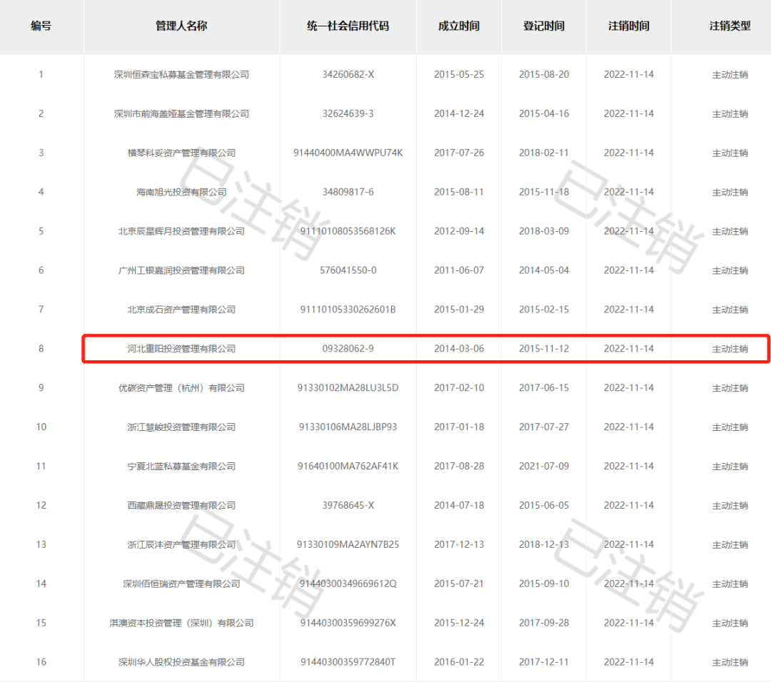 不经意间,一家名为“重阳”的私募,出现在中基协列示的已注销名单中。
