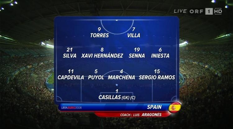 经历了2006年世界杯的洗礼,作为长期的大赛配角,预选赛之王,西班牙在2008年迎来了属于自己的时代。西班牙在2008年欧洲杯拥有这样一套中场配置:法布雷加斯(21岁/阿森纳)、大卫-席尔瓦(22岁/瓦伦西亚)、德拉雷德(23岁/赫塔菲&皇马)、卡索拉(23岁/比利亚雷亚尔)、伊涅斯塔(24岁/巴萨)、阿隆索(26岁/利物浦)、哈维(28岁/巴萨)、塞纳(31岁/比利亚雷亚尔)。