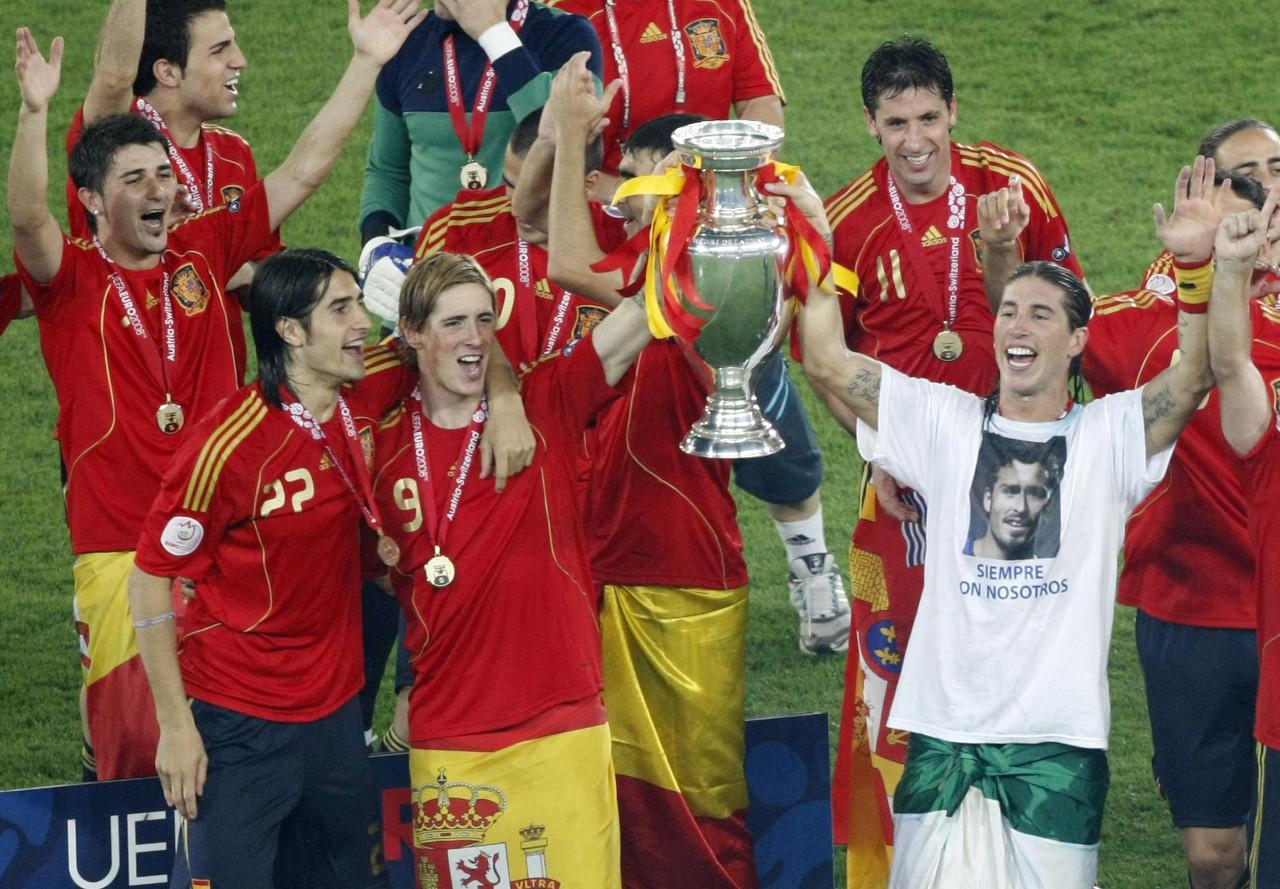 2008年欧洲杯:哈维、阿隆索、伊涅斯塔、大卫-席尔瓦、法布雷加斯、塞纳、卡索拉、德拉雷德
