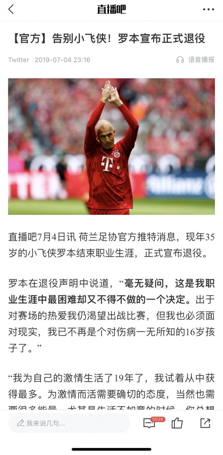 2019年夏天,罗本做出了退役的决定。去年夏天,他宣布复出,并加盟自己的老东家格罗宁根。今天罗本再次宣布结束职业生涯。
