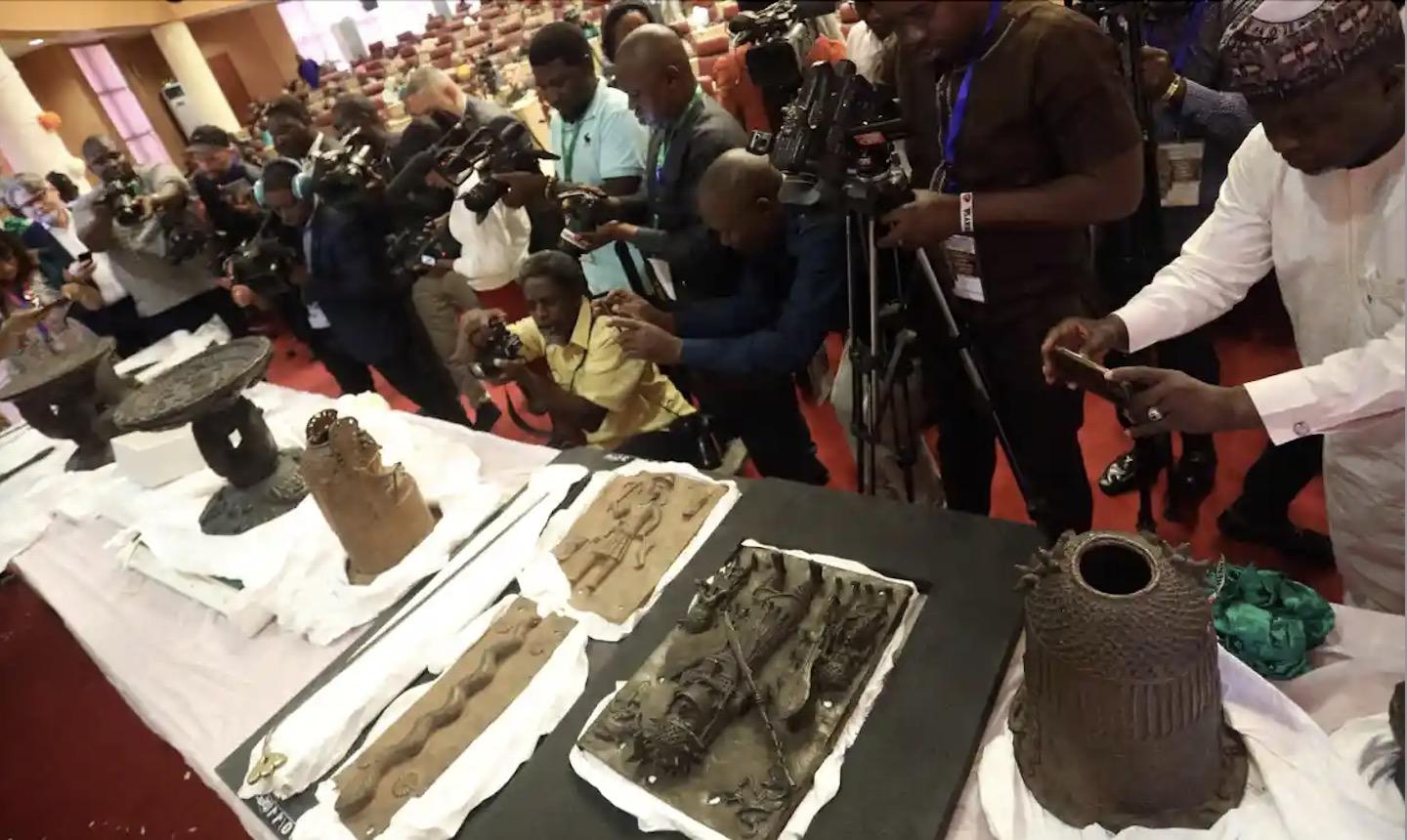 2022年12月,德国归还的贝宁青铜器在位于阿布贾的尼日利亚外交部展出