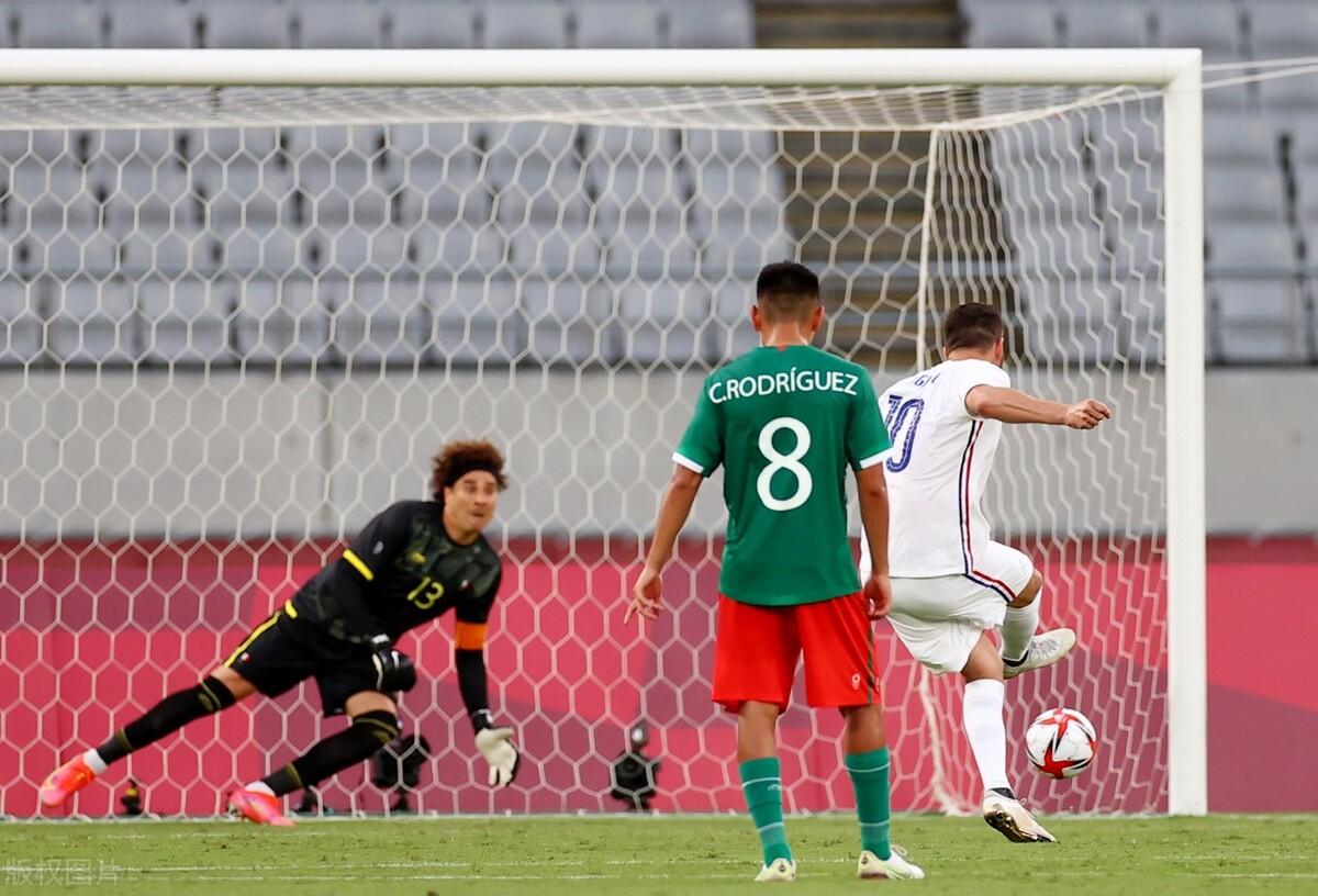 第68分钟,法国队获得点球机会,吉尼亚克操刀主罚,皮球从奥乔亚腋下穿过,法国队扳回1球,1-2。