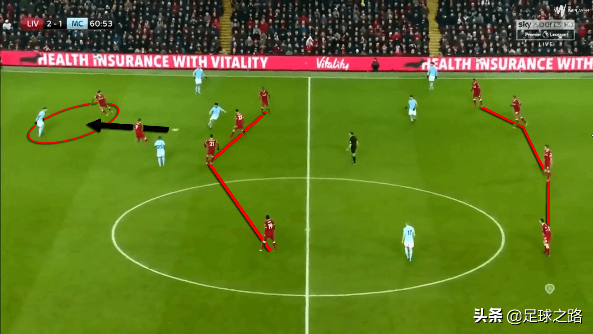 例如,利物浦就曾经利用中段防守的方式,在英超中击败过曼城,首先这种防守压迫的方式,防止了利物浦被曼城完全困在自己的半场,其次,也可以让萨拉赫、马内和菲尔米诺三人在曼城的半场有充足的空间可以利用。